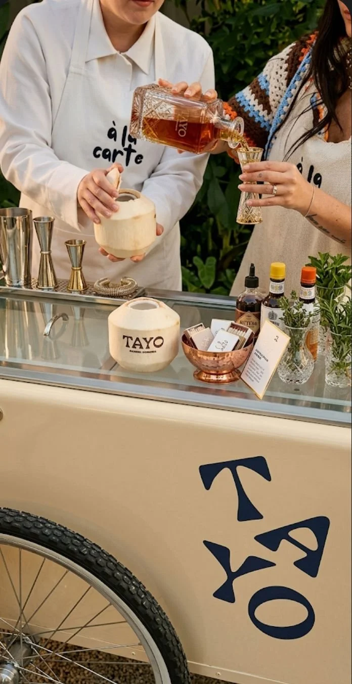 A premium cocktail service for high-impact events. We serve a clean, refreshing rum punch directly inside your custom branded coconuts, prepared live by our professional team. This is more than a drink; it is a full-service tropical experience delivered at your location.